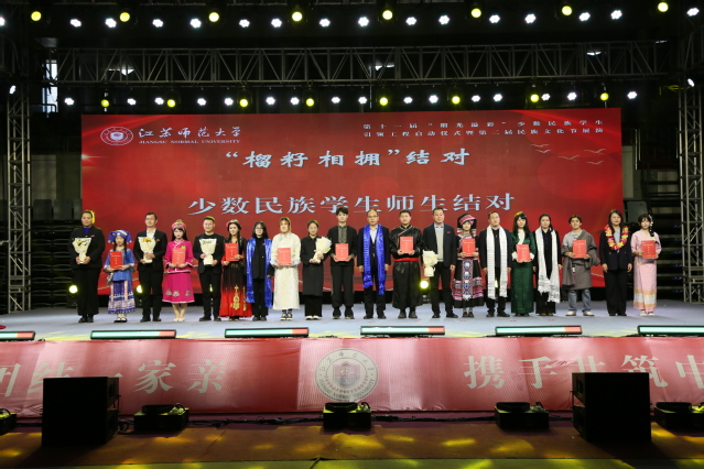 活動現場進行“暖心護航”發布,解讀《江蘇師范大學“榴光溢彩”工程實施辦法(2025年修訂)》核心內容,揭曉“十項惠生舉措”;開展“同心同向”聘任,為第十一屆校內外“曙光導師”“韶光益友”頒發聘書;舉行“榴籽相擁”少數民族師生結對儀式;開展“逐光奮進”獲獎學生頒獎環節。
