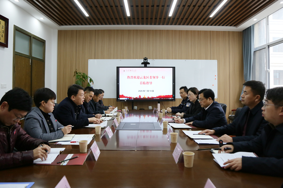 1月14日,云龍區(qū)委副書記李強(qiáng)率區(qū)委辦、區(qū)教育局、區(qū)科技局、彭城街道及彭城派出所等單位相關(guān)負(fù)責(zé)同志來到云龍校區(qū),就高校安全穩(wěn)定工作與校地融合發(fā)展進(jìn)行專題調(diào)研并座談交流。校黨委常委、紀(jì)委書記、派駐監(jiān)察專員閭浩主持會議并講話,學(xué)校相關(guān)職能部門負(fù)責(zé)人參加座談。