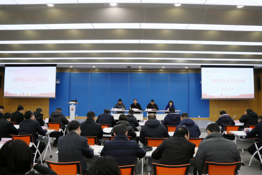 1月19日下午,學(xué)校召開2026年人才工作會(huì)議,會(huì)議全面總結(jié)2025年人才工作成效與經(jīng)驗(yàn),深入分析當(dāng)前人才工作面臨的新形勢、新機(jī)遇,對2026年人才工作進(jìn)行全面動(dòng)員和系統(tǒng)部署。校黨委副書記、校長杜增吉,副校長朱國軍出席會(huì)議,相關(guān)學(xué)院和部門主要負(fù)責(zé)同志參加會(huì)議。