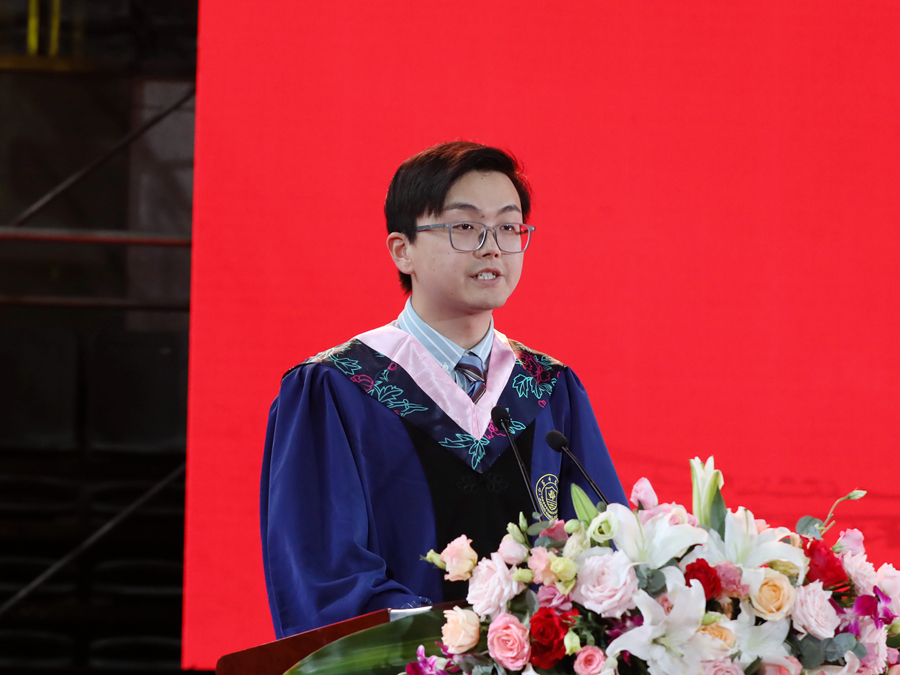 教育科學學院劉鋮同學代表畢業研究生發言,分享了讀研期間刻苦求學和創新實踐的豐富經歷,向陪伴成長的母校、教導成才的老師和相互扶持的同窗致以衷心的感謝。劉鋮表示,在最好的青春,要堅定夢想的方向、保持奮斗的姿態、不負青年的擔當,在更大的格局中找到實現自我價值的坐標,在波瀾壯闊的偉大征程中演繹壯美人生。