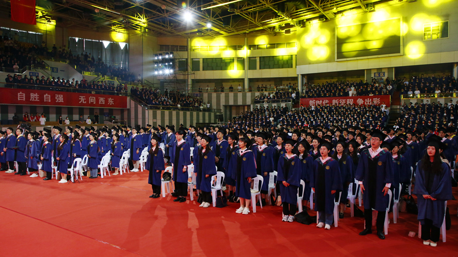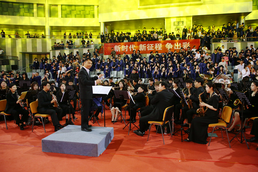 典禮正式開始前播放了視頻短片《北遷》《遠航》,帶領研究生重溫師大歷史以及三年求學歲月的美好記憶。音樂學院研究生的快閃表演,歌聲清澈,朝氣蓬勃,展現了我校研究生陽光向上的精神面貌,將現場的氣氛烘托得活潑熱烈。
