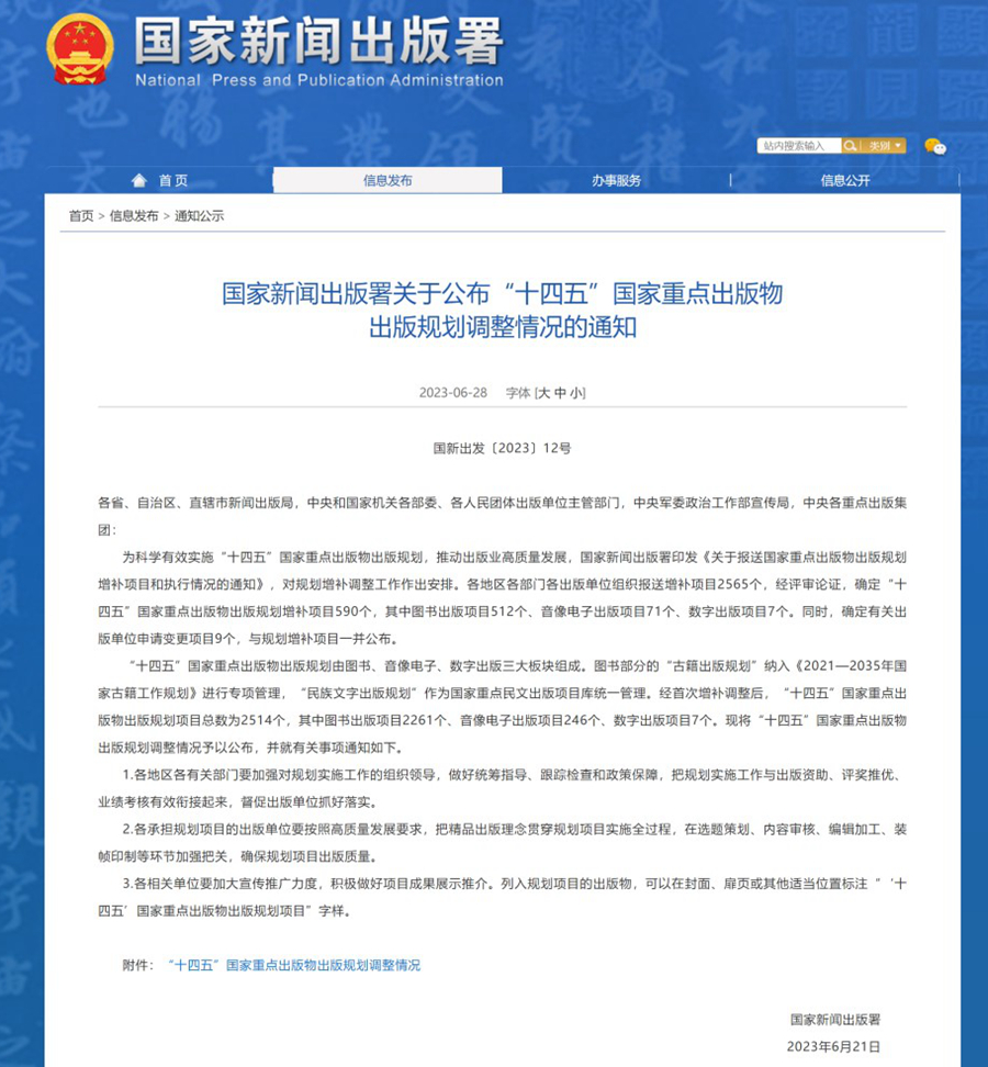 “十四五”國家重點出版物出版規(guī)劃是我國出版業(yè)最高級別的出版專項規(guī)劃,旨在進一步提升國家精品出版能力,推動出版業(yè)高質(zhì)量發(fā)展,助力科技強國和文化強國建設。“十四五”國家重點出版物出版規(guī)劃圖書項目分為哲學社會科學、文學藝術、自然科學與工程技術、未成年人出版物、民族文字、古籍等子規(guī)劃項目,其中,哲學社會科學出版規(guī)劃此次共1000余項參與評選,最終200項入選。