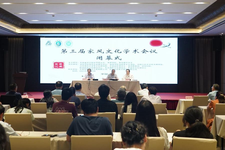 研討會上,陳延斌教授作了題為《建設以優秀家風為核心的新時代家文化》的主題報告。報告緊緊圍繞傳統家文化的組成部分、豐富內蘊、時代價值展開,強調了傳統家文化對于新時代家庭建設、家庭教育、家風培育的重要價值,以及建設以優秀家風為核心的新時代家文化的系列舉措。閉幕式由陳延斌教授主持,會上發布了《池州宣言》,倡導全國家庭教育、家庭家風等家文化研究和家庭教育培訓機構,建立全國家文化聯席會議,加強合作,資源共享,定期舉辦全國性家文化研究論壇,共同為新時代中國特色家文化建設獻計獻策,助推全國家庭教育實踐探索和家文化學術研究。