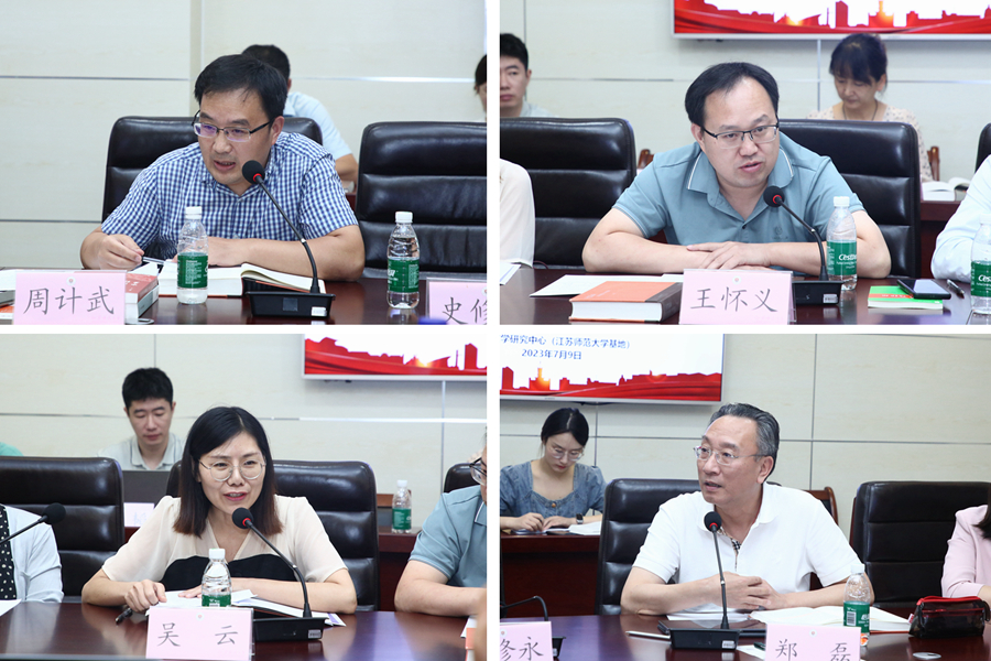 在研討環節,揚州大學文學院姚文放教授、南京師范大學文學院何平教授、徐州醫科大學副校長張玉勤教授、南京大學藝術學院周計武教授、武漢大學文學院王懷義教授、《中國當代文學研究》編輯王昉、中國礦業大學人文與藝術學院院長史修永教授、徐州工程學院人文學院副院長吳云教授、江蘇省產業教授鄭磊、徐州報業傳媒集團薛欣欣總編輯、中國作家協會新時代文學研究中心(江蘇師范大學基地)主任黃德志教授、《江蘇師范大學學報》主編呂靖波教授、江蘇師范大學文學院劉彥順教授、田崇雪教授、郝敬波教授、種海燕副教授、李金梅副教授和溫德朝副教授等專家學者,結合學習貫徹習近平總書記在文化傳承發展座談會上重要講話精神的體會和心得,深入交流了文化傳承發展與國家文化形象建設等問題,對《中國形象:審美規律與藝術構建》一書展開熱烈討論。