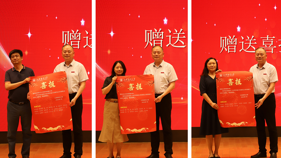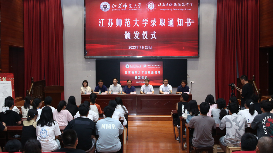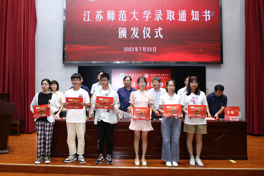 會上,校領導向新生和家長們從學校人才培養、師資隊伍、學科建設、科技創新、國際交流等方面介紹了江蘇師范大學的基本情況,并向錄取的新同學表示熱烈歡迎,希望新生們能夠充分利用假期,盡快轉變角色,提前做好學業規劃,堅持學習和鍛煉、素養與能力并重,自覺把個人之夢融入國家富強、民族復興之夢中去。新生代表們紛紛表達了考入江蘇師范大學的喜悅之情,同時對辛勤培育他們的中學表達了真誠謝意,展望了對未來大學生活的美好憧憬。與會領導與相關負責同志分別與家長和新生座談交流。家長及受訪中學領導紛紛表示,江蘇師范大學校領導不辭辛苦,到各個學校現場頒發錄取通知書,體現了對學生的關愛,是一堂生動的“大學第一課”,他們希望同學們進入大學以后,能夠堅定理想、不忘初心、接續奮斗,創造屬于自己、屬于社會、屬于國家和民族的無悔青春。