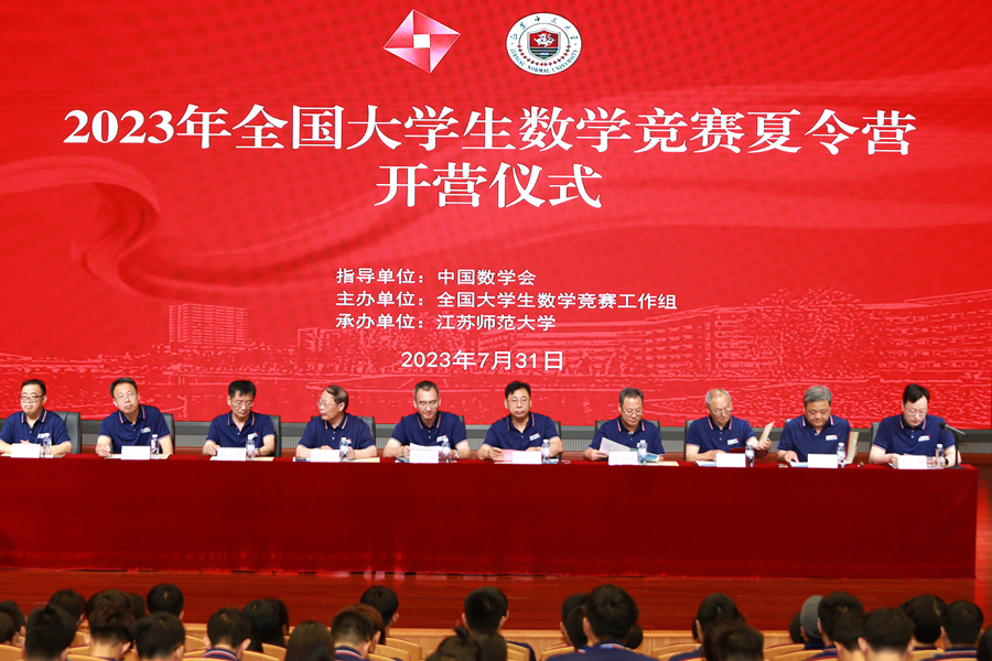 7月30日至8月5日,由中國數學會指導、全國大學生數學競賽工作組主辦,我校承辦的2023年全國大學生數學競賽夏令營在馬可音樂廳成功舉行。中國數學會數學競賽委員會副主任、全國大學生數學競賽工作組組長、北京航空航天大學教授佘志坤,江蘇師范大學副校長杜增吉,江蘇省工業與應用數學學會理事長、東南大學數學學院院長、歐洲科學院院士曹進德,全國大學生數學競賽工作組副組長、北京大學教授馮榮權,北京數學會秘書長、北京大學教授楊家忠,北京航空航天大學教授高宗升,山東數學會副理事長、山東大學教授崔玉泉,北京地質大學數理學院院長高世臣,湖南交通工程學院黨委副書記馮良貴出席開營儀式。
