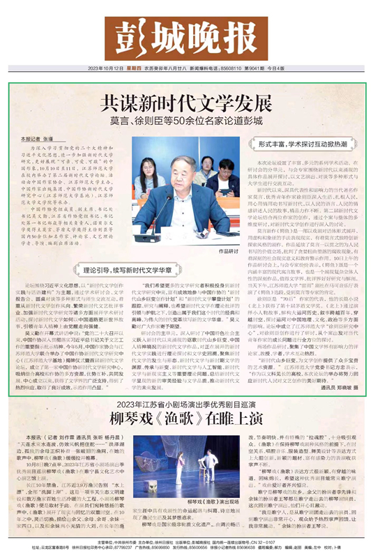 10月12日徐州日報、彭城晚報聯合報道我校舉辦的第二屆新時代文學論壇,報道內容如下: