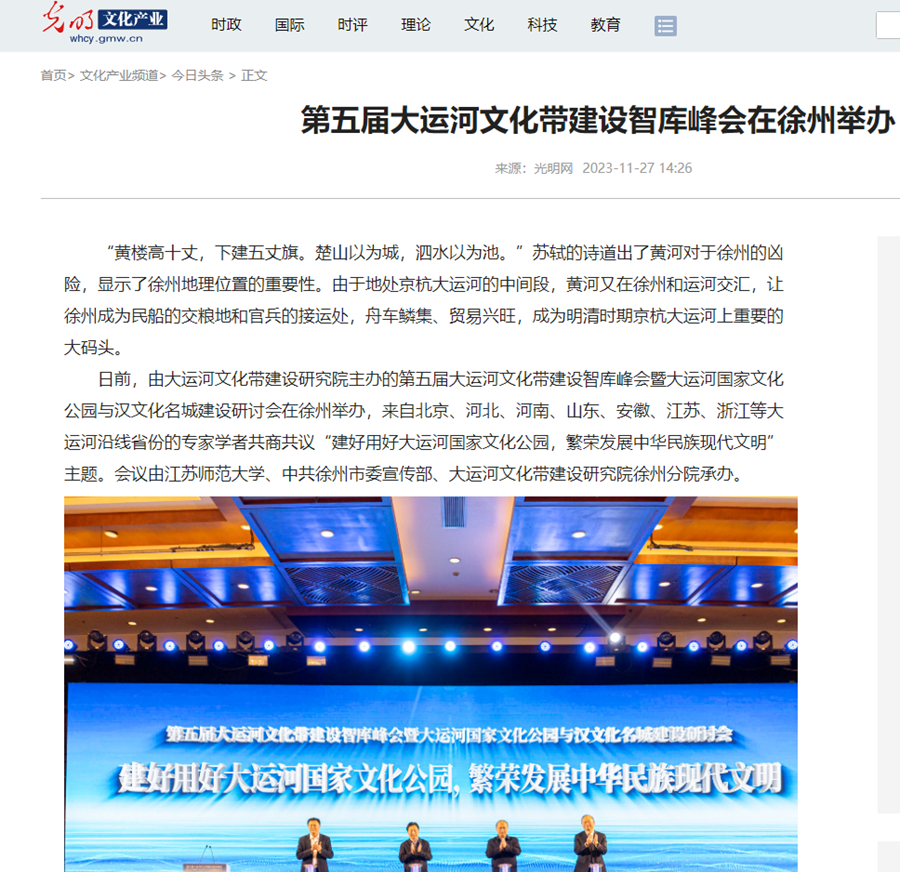 光明網(wǎng)11月27日?qǐng)?bào)道我校承辦的第五屆大運(yùn)河文化帶建設(shè)智庫(kù)峰會(huì),報(bào)道內(nèi)容如下: