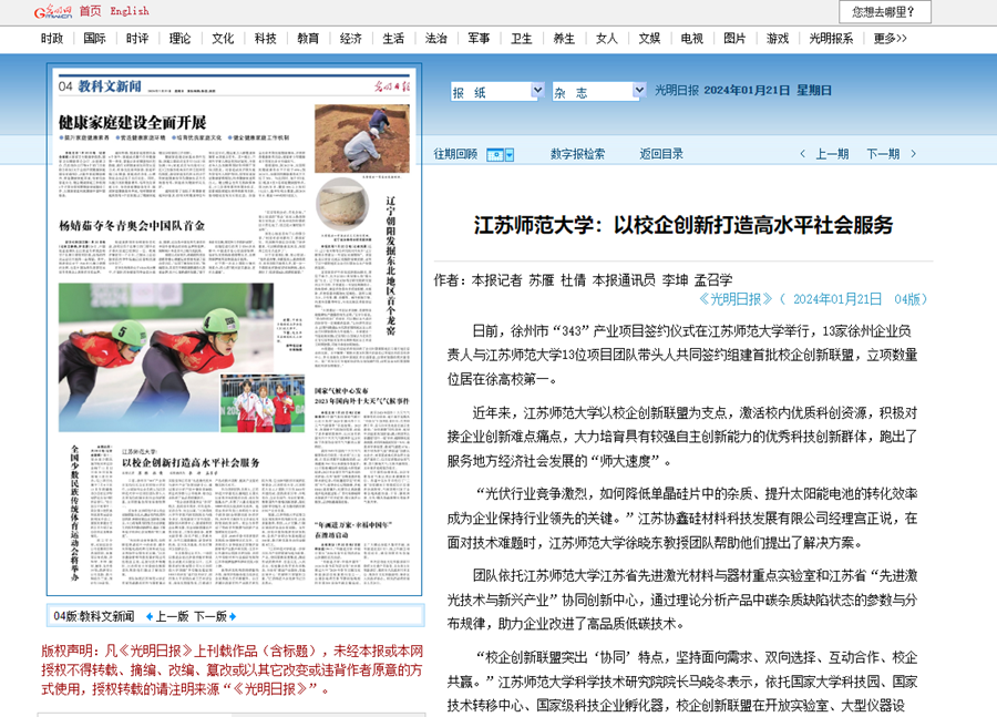 光明日報1月21日報道我校科研創(chuàng)新服務(wù)地方發(fā)展,報道內(nèi)容如下: