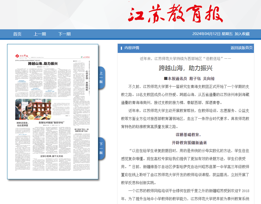 江蘇教育報4月12日報道我校西部支教,報道內(nèi)容如下: